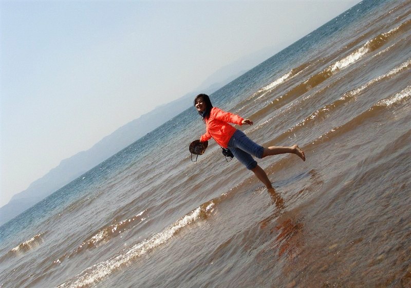 4月初我和我的家人带着这份荣誉和喜悦之情踏上了旅程。第一站是美丽的抚仙湖。由于湖周围自然环境没有受到大的破坏,至今,抚仙湖仍然是云南省未受到污染的湖泊。诗人们形容为“琉璃万顷”,这是一点也不夸张的。它是云贵高原上一颗晶莹的明珠。波涛翻动时,白浪如朵朵睡莲竞相开放,又似串串银链滚动;无波时如明镜般一片澄清碧绿。远山近水,洲岛错落,使人心旷神怡,爽快清新。 我跳跃的脱下鞋,试了下水温,游泳还是没问题的,据说一年四季都可以游泳,湖边的凉亭吹吹湖风好一个悠然自得。