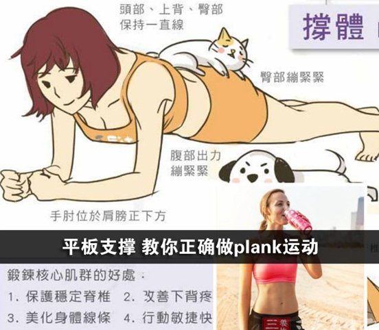 Plank(平板支撑)运动是最实用的一组减肥动作和塑形运动,一招瘦遍全身,而且不需要借助其他的锻炼工具,随时随地都可以做。