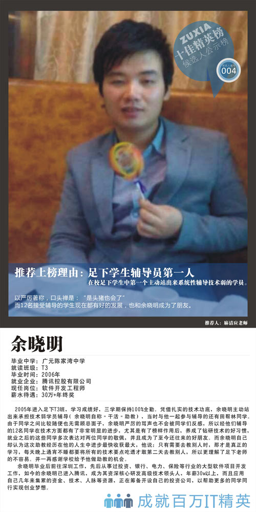 足下十佳精英评选——百名候选人推荐之No4: 余晓明