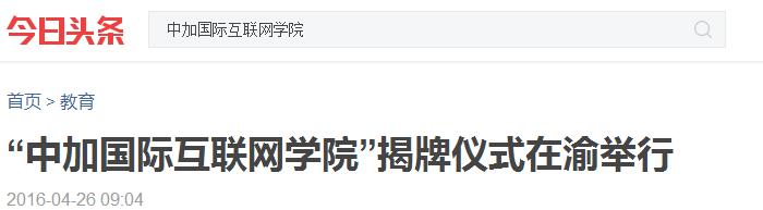 今日头条报道摘要:2016年4月25日上午,“中加国际互联网学院”揭牌暨“中国重庆足下软件学院与加拿大荷兰学院国际互联网人才培养合作”签约仪式在中国西部“硅谷”——重庆市沙坪坝区西永微电园举行。加拿大驻重庆总领事馆教育专员廖忠领事、加拿大荷兰学院院长Brian McMillan(布莱恩•麦米伦)、重庆市经济和信息化委员会主任郭坚、重庆西永微电园开发有限公司党委书记、董事长聂红焰、重庆市沙坪坝区人民政府副区长蔡道静、重庆足下软件学院院长呙坤宏等等相关领导和嘉宾出席仪式。在来自各界的领导、专家、媒体和重庆足下软件学院300多名师生代表的见证与支持下,签约仪式顺利举行,这标志着重庆足下软件学院开始走向国际化,也将对中国职业教育发展和国际互联网人才培养起到积极的推动作用。