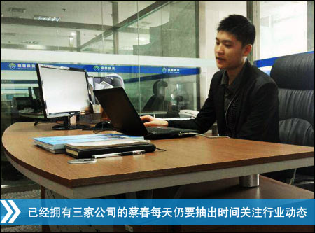 在足下电子商务T189班时,蔡春在老师的带领下一个人就建立并维护近10个网站,每月都有3000-4000元的收入。毕业之后,蔡春进入企业工作,学习企业运作与管理,12年底刚满18岁的蔡春在石桥铺的一间小屋内,几张电脑桌,几台笔记本,10个年轻人,开始了他的创业征程。