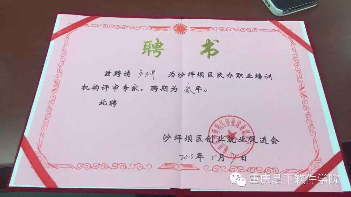 而在本次大会上,足下科教集团卢卫中老师被沙坪坝区创业就业促进会聘请为沙坪坝区民办职业培训机构评审专家!