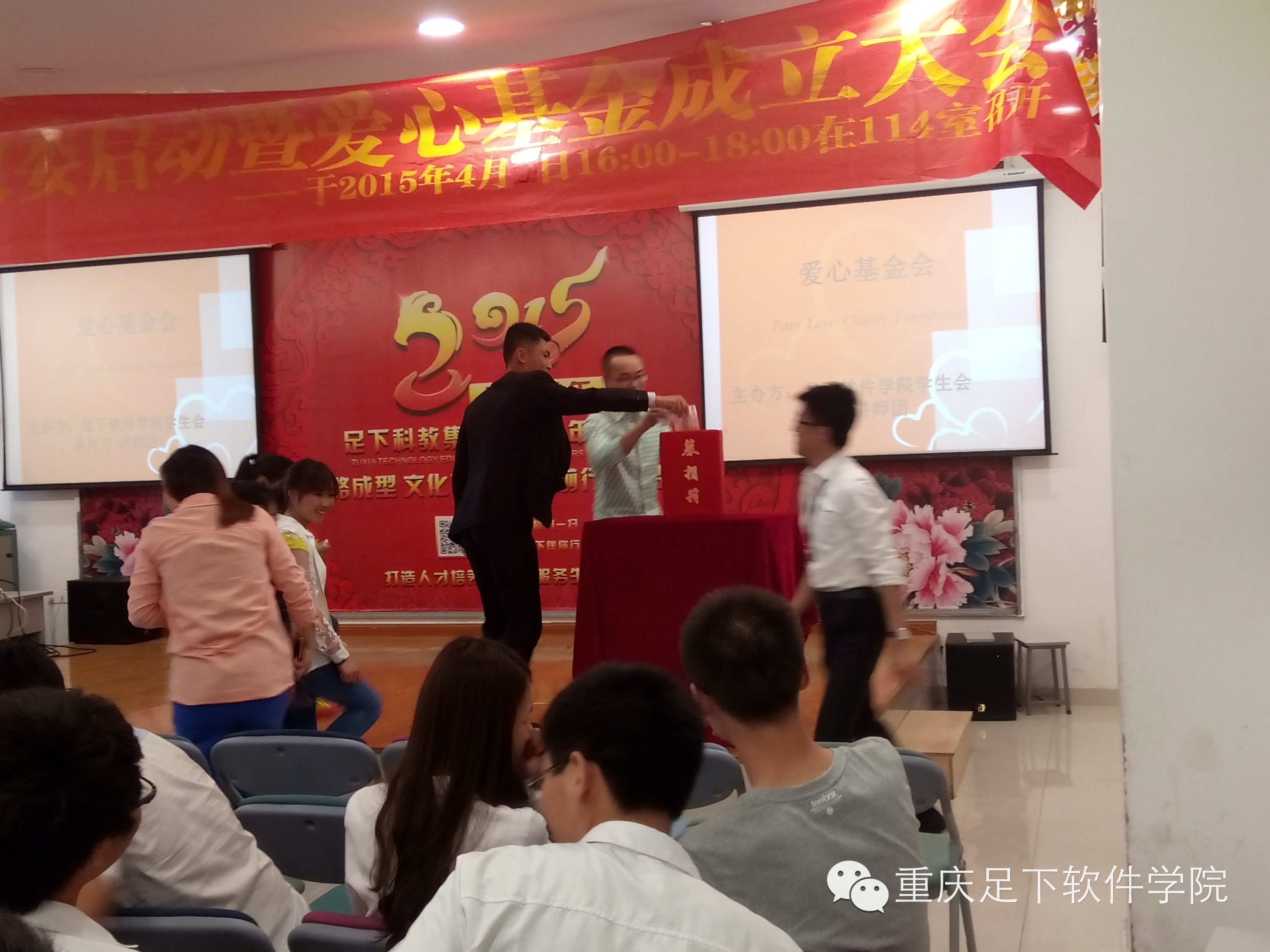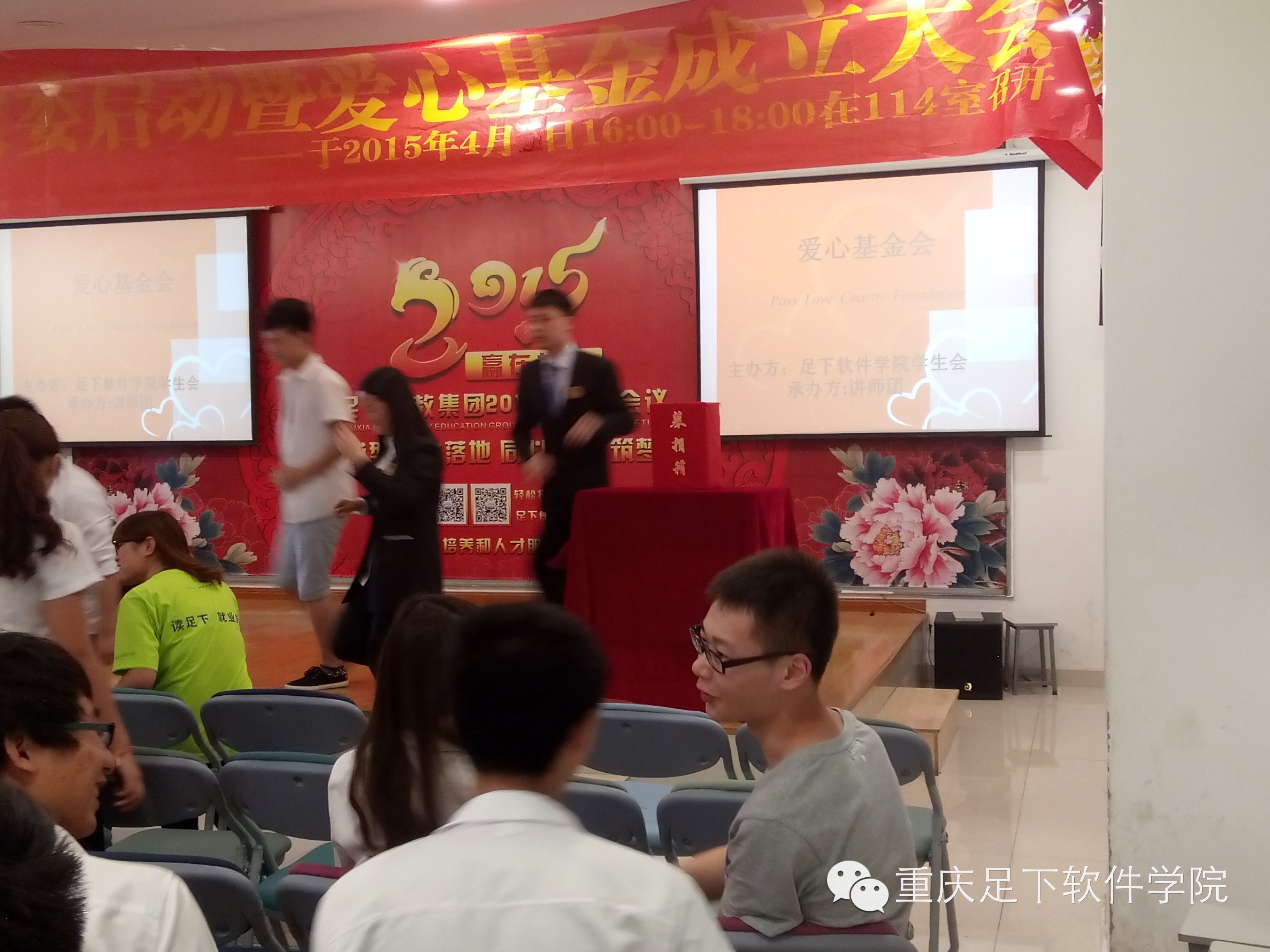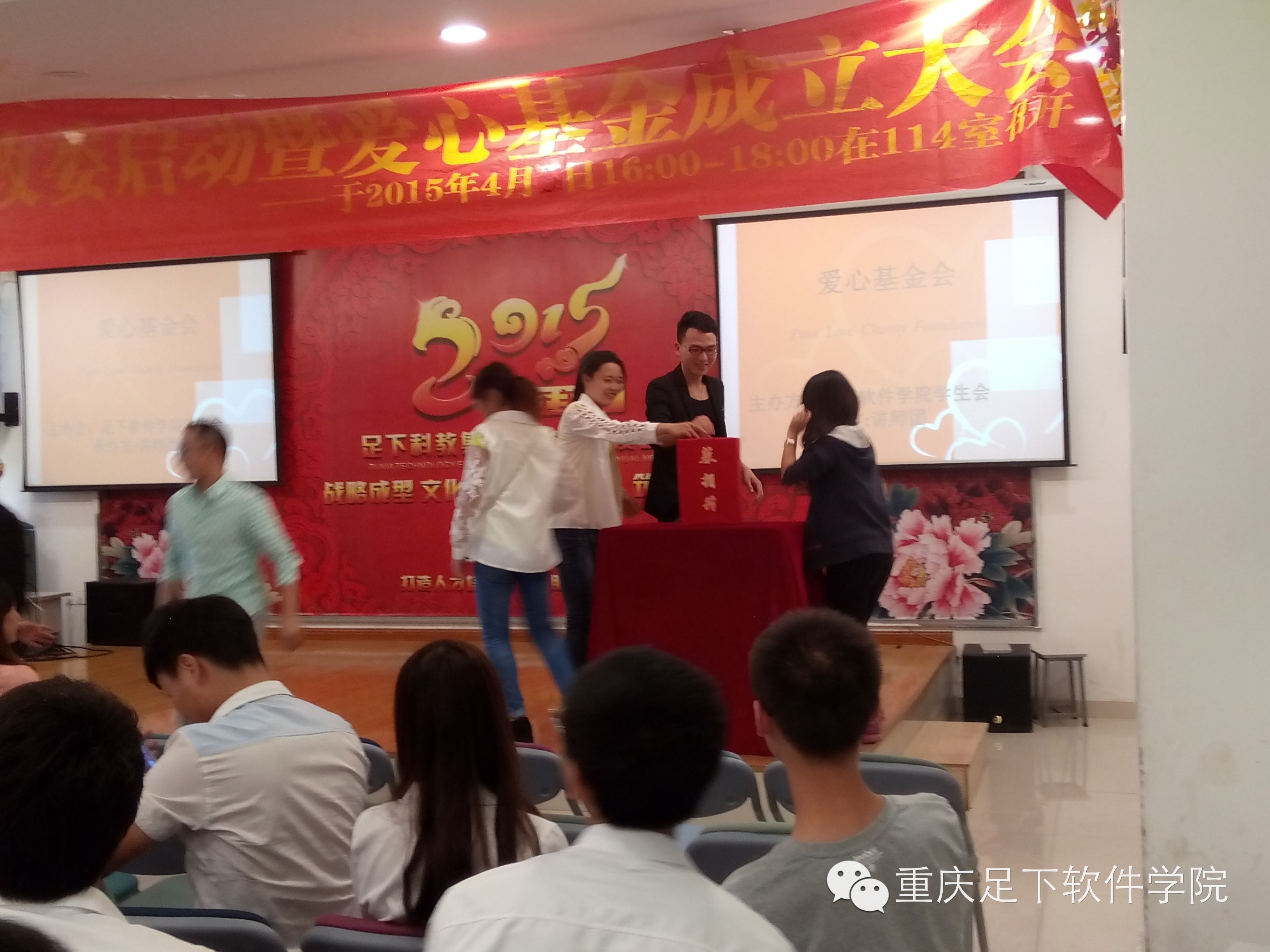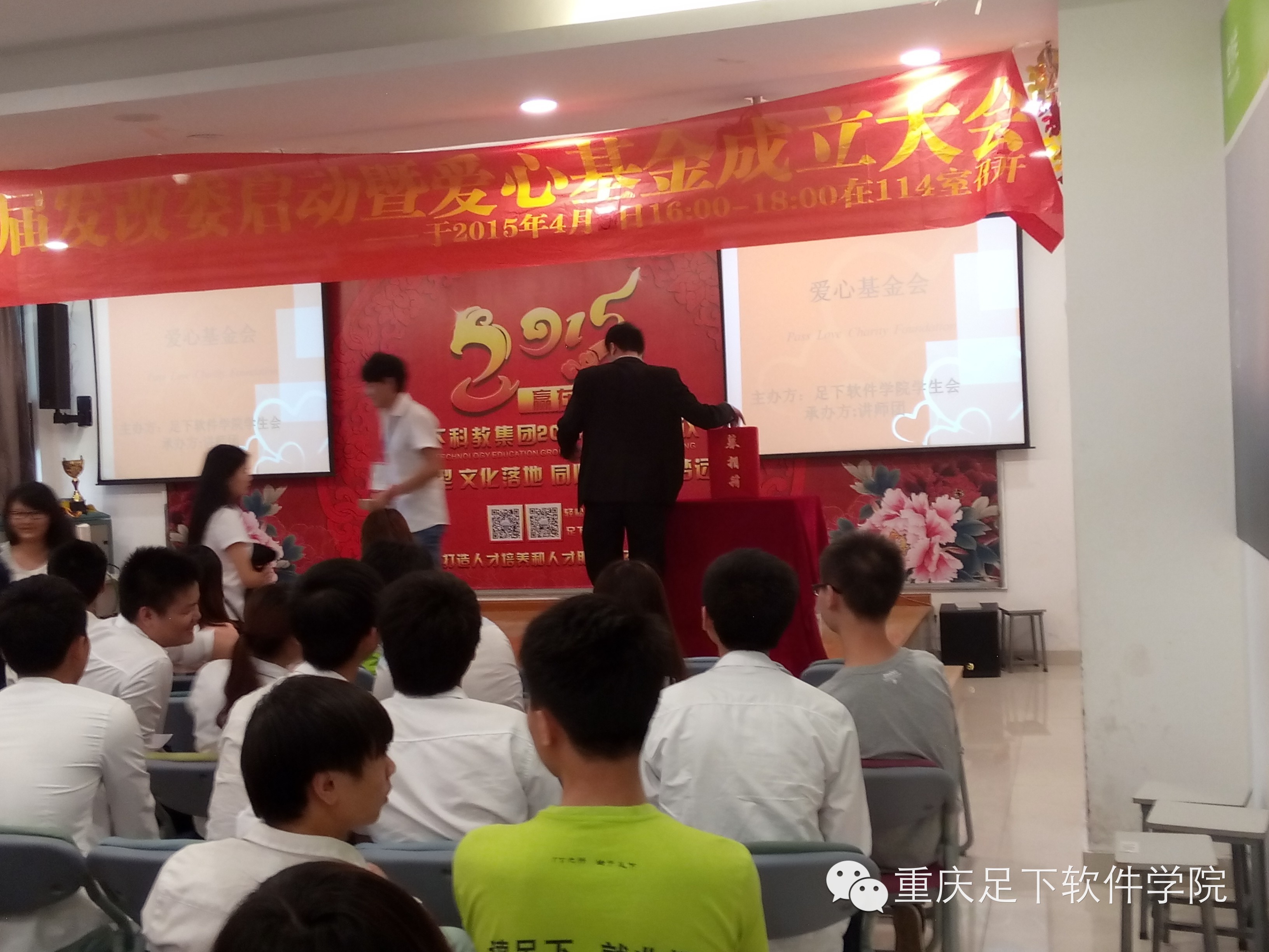 为了帮助那些品学兼优而家庭又很困难的学生能在足下顺利完成学业,足下科教集团于2015年4月9日成立了 “足下科教集团爱心健康基金会”,为响应集团奉献爱心的号召,让每个人都参与到助人为乐、帮助那些值得帮助的人的事业中来,足下软件学院学生会在2015年4月16日下午组织召开了“足下软件学院学生会爱心基金成立大会”,至此,每一个足下人都将通过“爱心健康基金会”奉献自己的爱心,帮助他人。