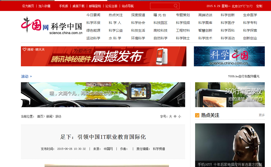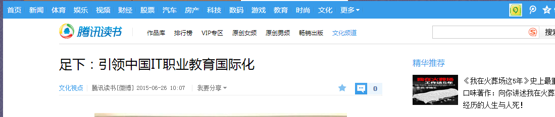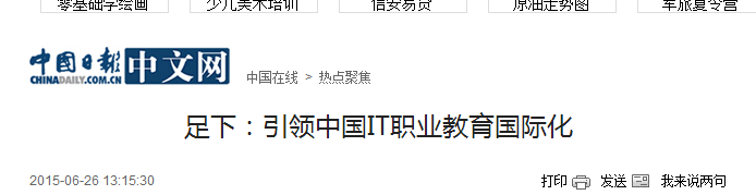 近日,一篇名为《足下:引领中国IT职业教育国际化》的新闻被中国网、中国日报网、凤凰网、腾讯网、搜狐网等等国内多家知名媒体转载报道。下面是部分媒体报道的截图: