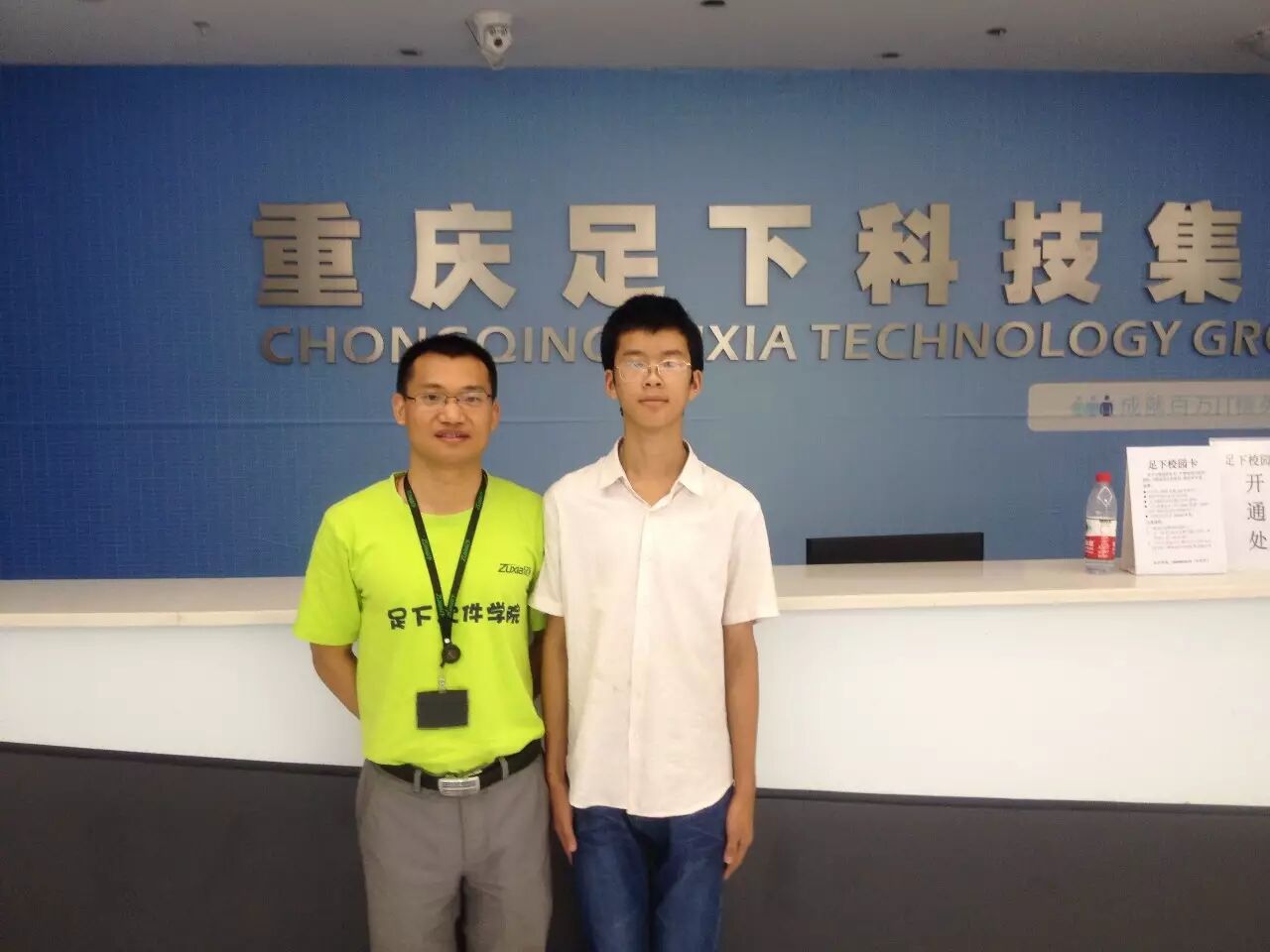 2015年7月3日,姜建同学在其表哥(足下毕业的学生)的带领下,来到足下软件学院考察学校,在卢老师的陪同下全程参观了学校。在参观的过程中明确了自己读书的目的,下定了读书的决心,他说,在足下技术上要达到优秀,健康上要达到优秀,每周要到健身房至少3次,在思维上要达到良好。