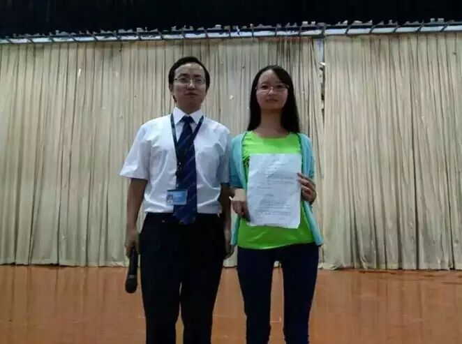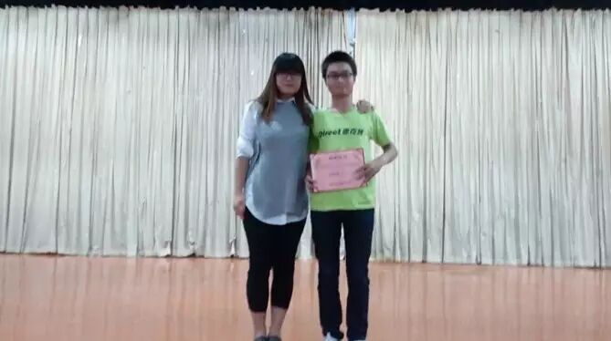 足下黄水莲老师与PLANK之王(IT1班罗林)合影留念