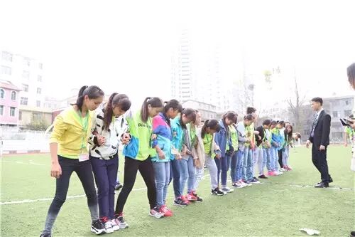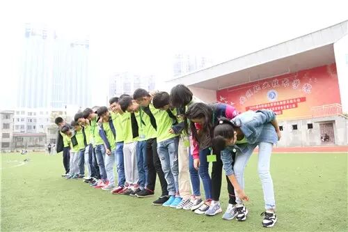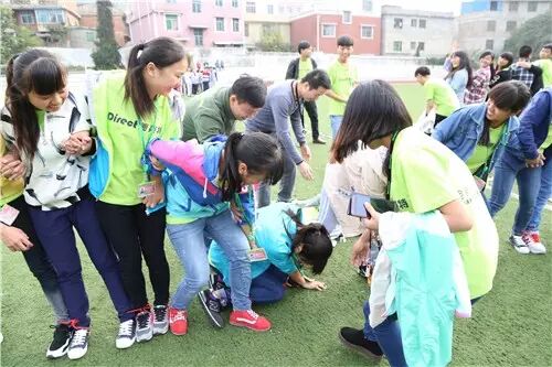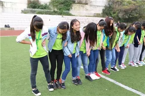 最后一个活动是“蛟龙出海",每个班级分成两组,脚绑着脚进行接力赛,一组人必须是横着走,不是竖着走。两队同时进行,比赛中,如果出现有人倒下、绳子断裂,必须暂停调好姿势在开始,谁先到达终点,谁就算赢。