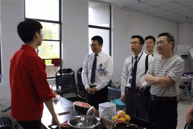 参观过程中,领导一行还来到203众创空间看到了有同学再卖水果、花、化妆品,通过了解得知卖水果的是“一个果园”公司,正在经营的同学是来自T345班的刘林同学,毕业于遂宁一中,将来想在上海工作,目标:实习工资5000元/月,转正7000元/月。龙延庄副院长通过简单了解足下的学子有自己的梦想,目标也很清晰,表示很不错,现在的大学生就是缺乏这种有目标、对未来有规划的学生!最后领导们还品尝了“一个果园”的西瓜汁,对西瓜汁的口感表示满意。
