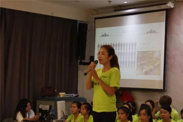 技术总监彭艳杰、健康总监张玲、品牌总监兰思磊、思维总监张红燕详细地汇报这一个月培训过程所取得的成果。