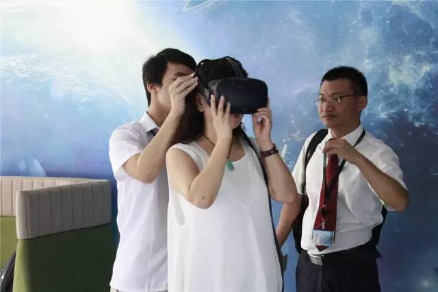 在参观VR时,顾名宇书记对VR前景十分看好,特别是在军事演习、医疗、购物等等,都会给人类带来前所未有的改变。