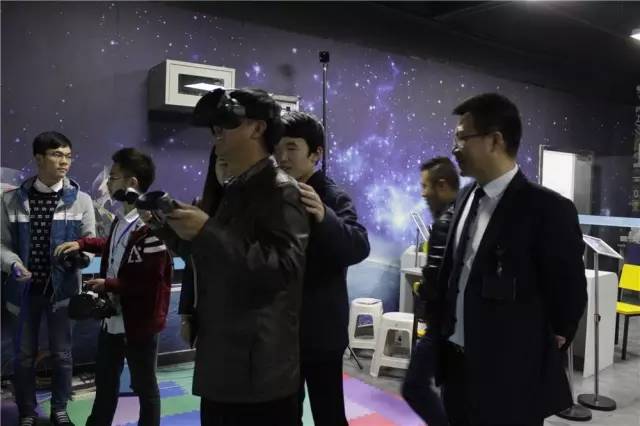 在来到VR、机器人、3D打印机、无人机体验室时,领导们纷纷还体验了VR,对VR虚拟现实的真实程度表示惊讶,同时也看到VR行业的未来,相信VR技术不久就会急缺人才!