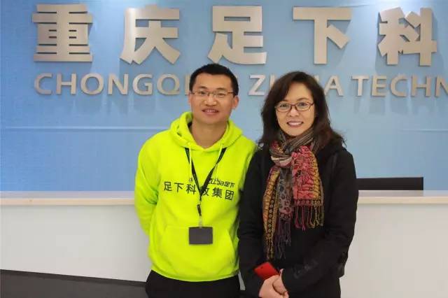 陈经理与足下科教集团副总卢卫中在足下前台合影