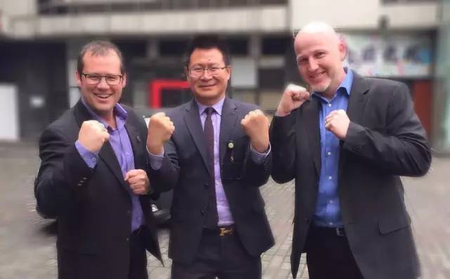 计算机系主任Mr. Paul Murnaghan先生(左)、重庆足下软件学院校长呙坤宏先生(中)、荷兰学院课程开发顾问Mr. Rodney Moore先生(右)为足下中加合作办学项目加油!