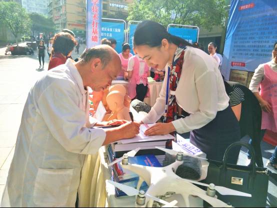 图:一名市民为17岁孙子咨询新专业,足下老师热情接待