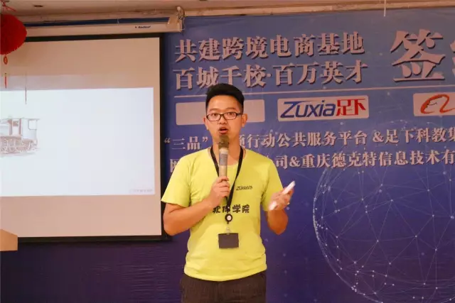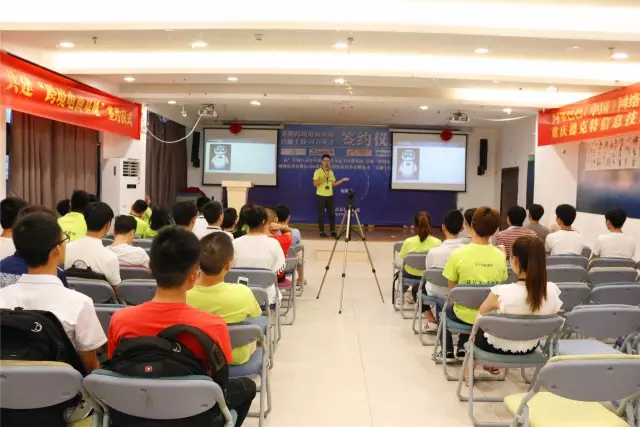 重庆足下软件学院电商组组长秦陆国主持讲座,重庆足下软件学院学术经理向魏、设计组组长刘莉莉、部分学术听取讲座。