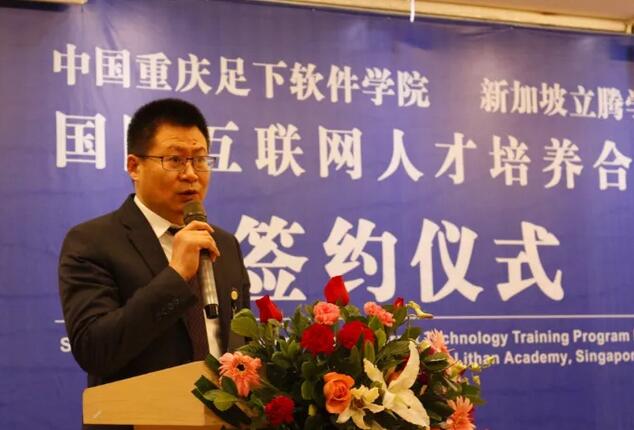 签约仪式中,呙坤宏校长首先致欢迎辞,对出席和参加此次签约仪式的各位嘉宾领导表示热烈欢迎和由衷感谢。他表示,今天的签约,对重庆足下软件学院来说又是一个重要的具有历史意义的时刻。他强调:“重庆足下软件学院和新加坡立腾学院两校共同开展国际互联网人才培养合作,完全是顺应当今时代和国际互联网高速发展的人才需求。我们力当本着对学生负责,通过双方优势互补,联合培养具有国际视野的互联网人才,势必会加速推动我国互联网行业的国际化发展。”