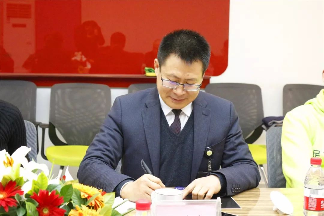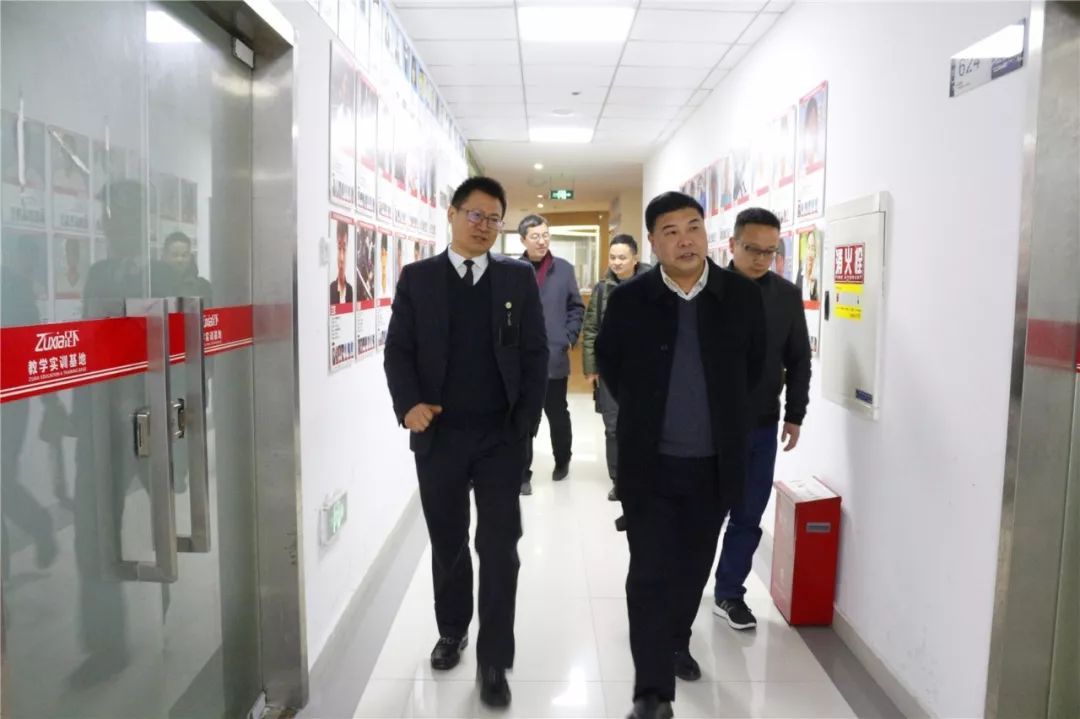 呙董事长为赵副院长等一行领导详细的介绍了足下科教集团爱的文化、发展历程、教学模式、健康文化、就业成果、班级公司化管理等。
