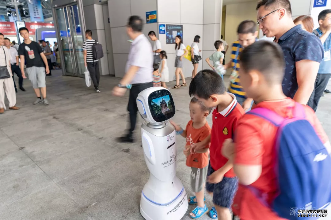 好多家长带自己的娃儿来智博会见识中国的人工智能技术!