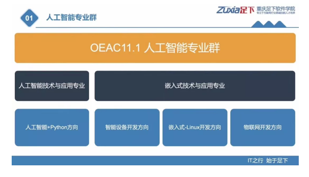 为进一步加强责任感、使命感、紧迫感,推动人工智能技术不断进步,推动人工智能产业健康发展,助力人工智能人才培养。足下软件学院进一步优化了学院开设的4大专业群之一人工智能专业群,0基础的你也不用怕学不会,因为足下的课程设计考虑到了这一点,课程安排由易到难,逐渐深入,很容易就能学的会。