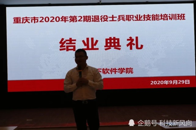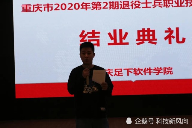 2020年9月29日上午,重庆市2020年第2期退役士兵职业技能培训班结业典礼在重庆足下软件学院一楼活动室召开,重庆足下软件学院副院长卢卫中,教员秦陆国等老师以及来自各地退役士兵40余名学员参加了结业典礼。活动由吴洪英老师主持。