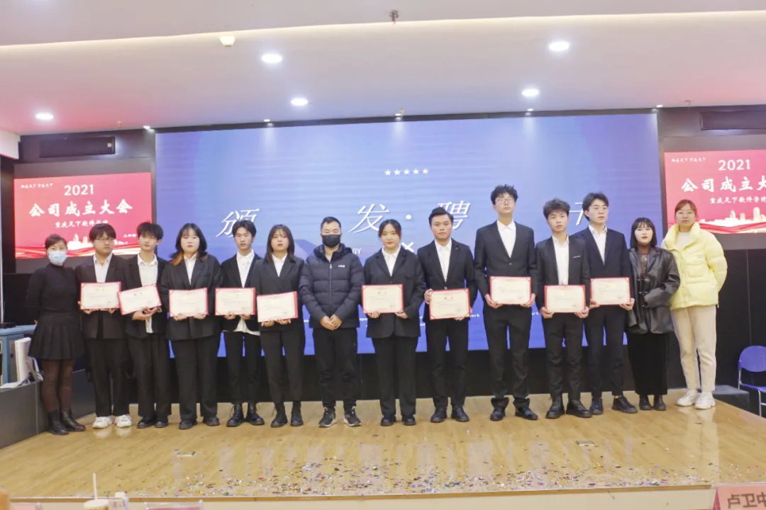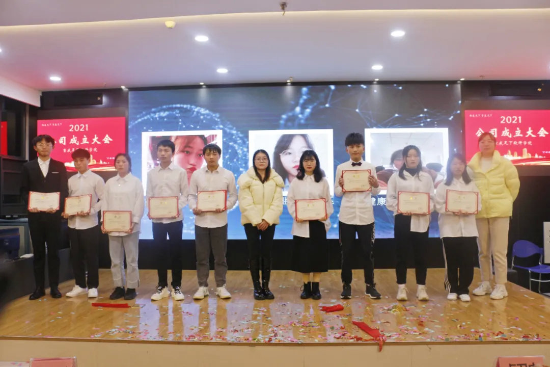 公司高层代表上台致辞并带领公司成员展示班级公司风采风貌后,老师为各班级公司管理人员颁发了任职聘书,希望大家担负起自己应尽的职责并让公司发展的更加长远强大。