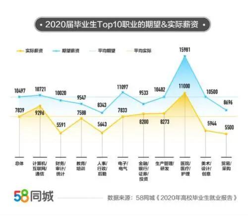 58同城发布《2020年高校毕业生就业报告》,2020届毕业生平均薪资7839元,计算机/互联网/通信行业以9296元的月薪高居第二,最受欢迎。