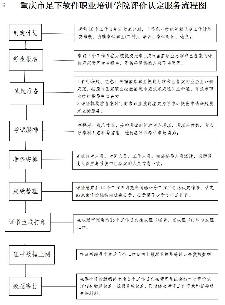 重庆市足下软件职业培训学院评价认定服务流程图